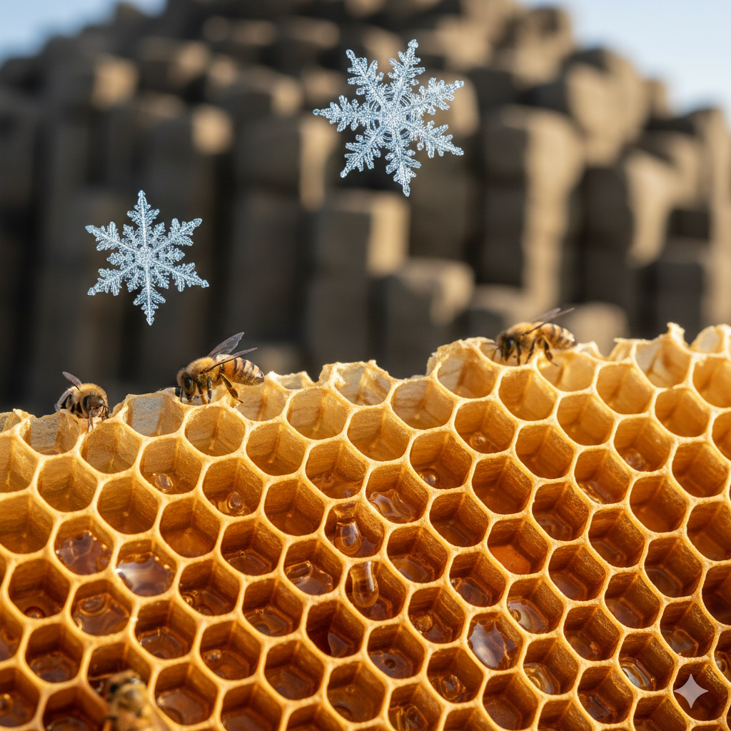 At the microscopic level, Hexagoane are dictated by the laws of chemistry. Water molecules (14$H_2O$) crystallize into a hexagonal lattice when they freeze.15 This is why every snowflake, despite its unique design, always has six sides or six points. The hydrogen bonds between water molecules naturally form a hexagonal arrangement because it is the most stable low-energy state for those molecules to occupy.